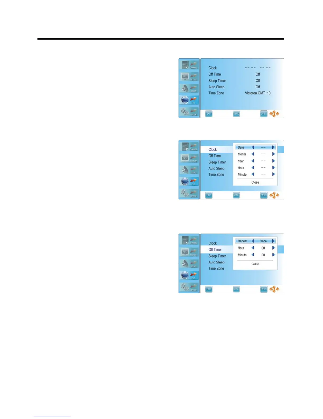 NOTE: in DTV mode, the Clock function is not available when there is DTV signal input.