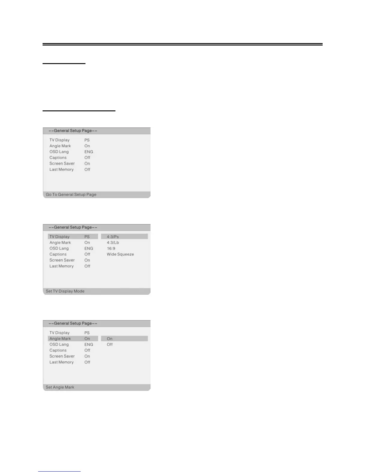 Press the SETUP button to enter the General Setup Page. The screen will display as below: