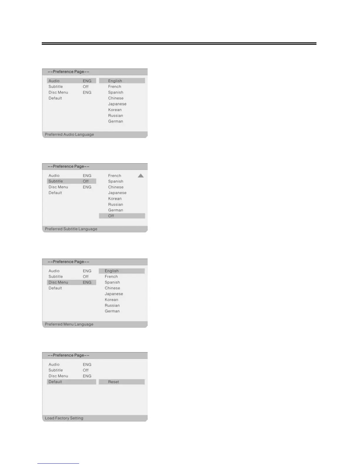 3. Press the ▲▼ direction buttons to select audio