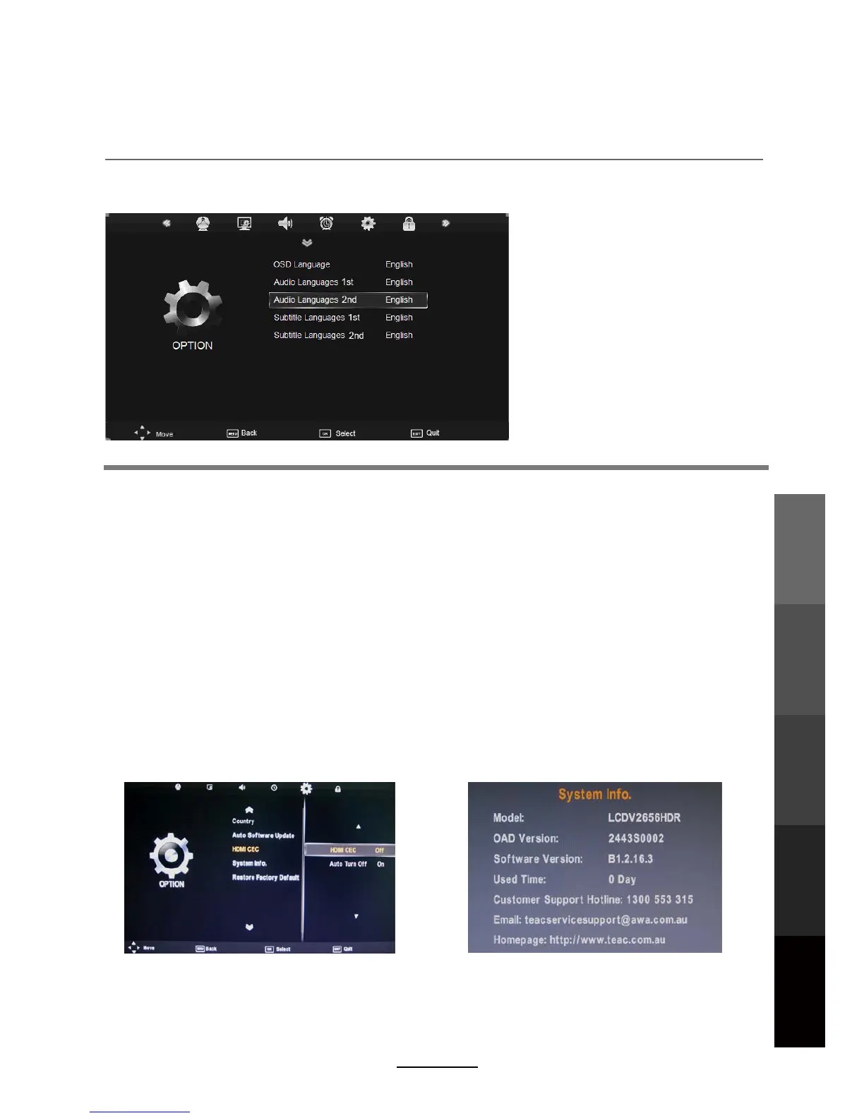 Sytem lnfo: Diplay the TV system information and custom support information.
