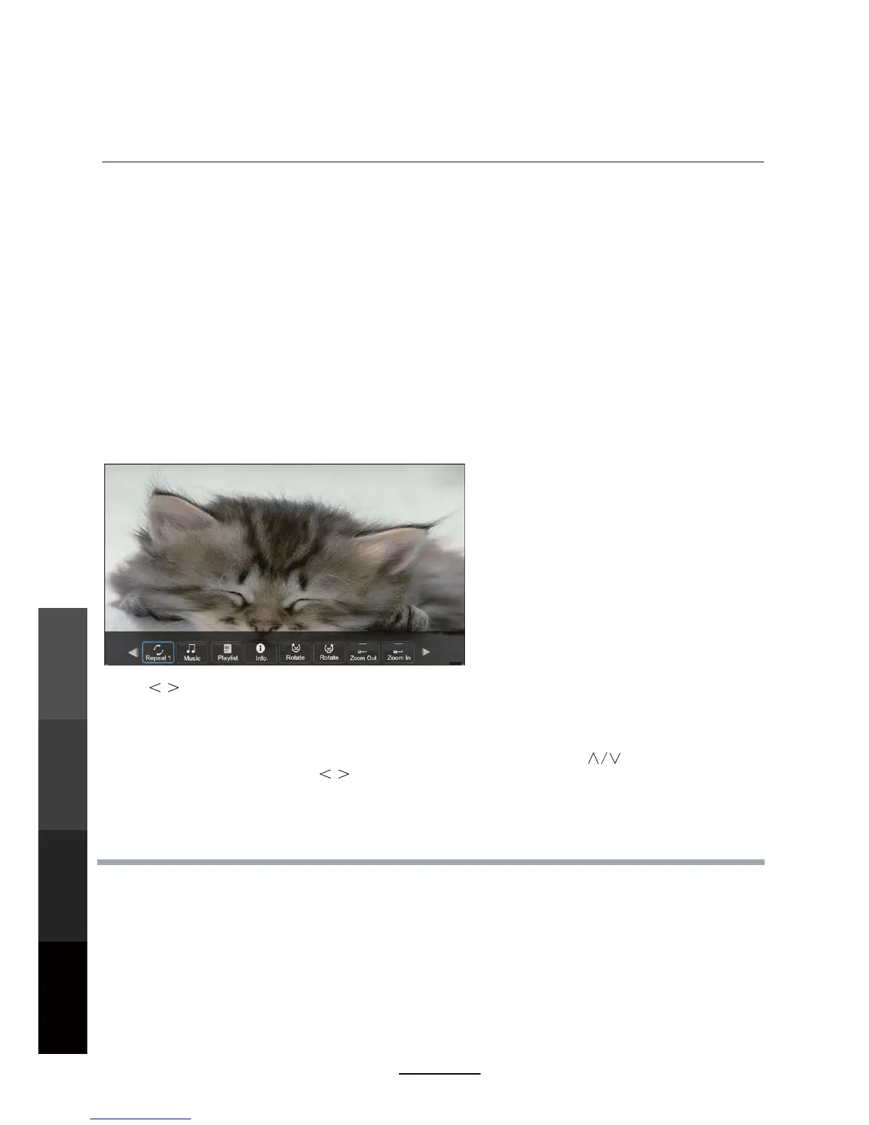 To display photos, select files from the folder and press PLAY to view in full screen. The image should