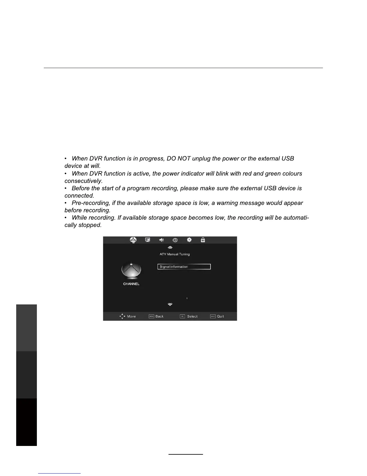 Digital Video Recording (DVR) settings (In DTV Mode only)