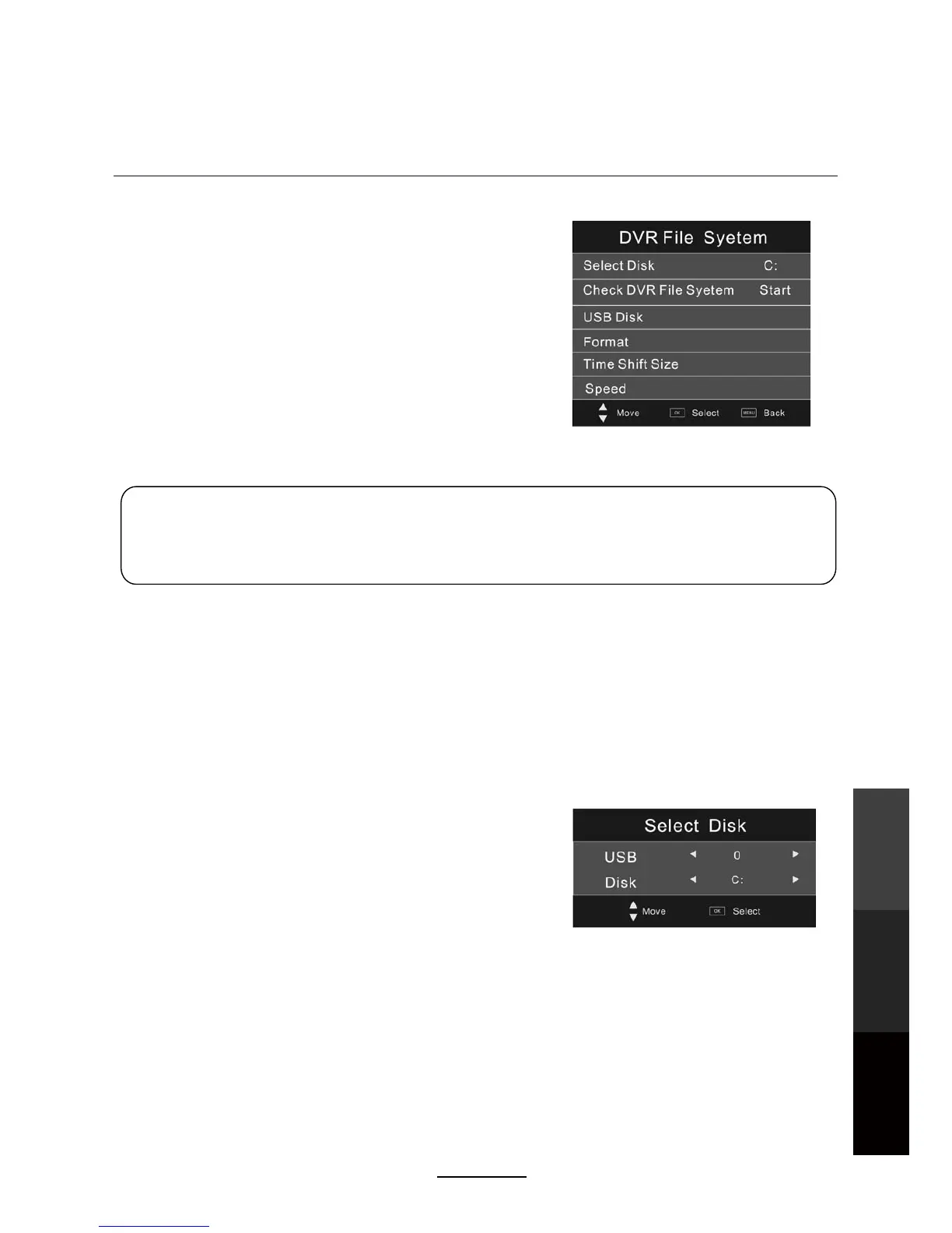2. Under the CHANNEL tab, select DVR File System and press OK