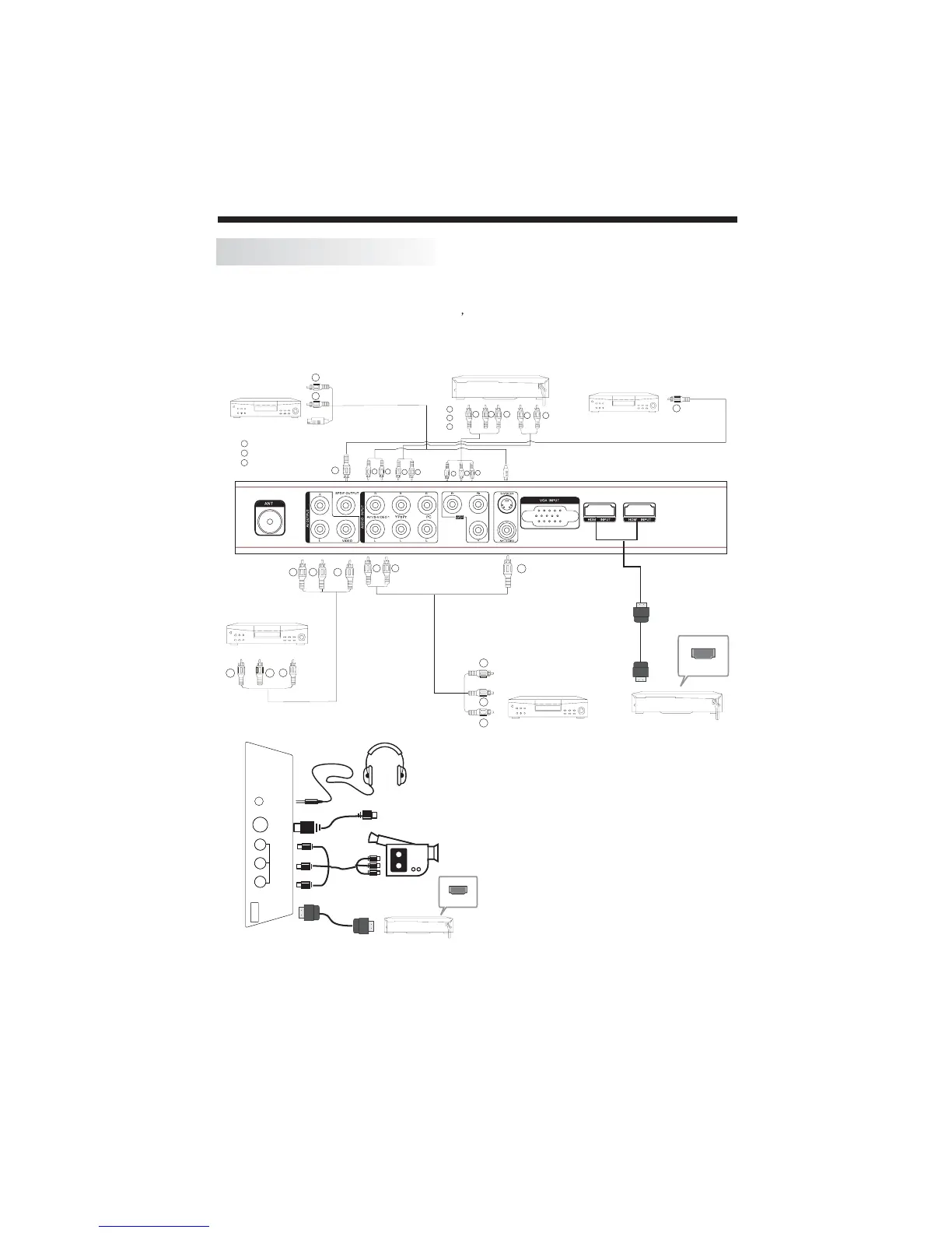 connection to VCR, DVD or other video equipment, three group of HDMI for HD