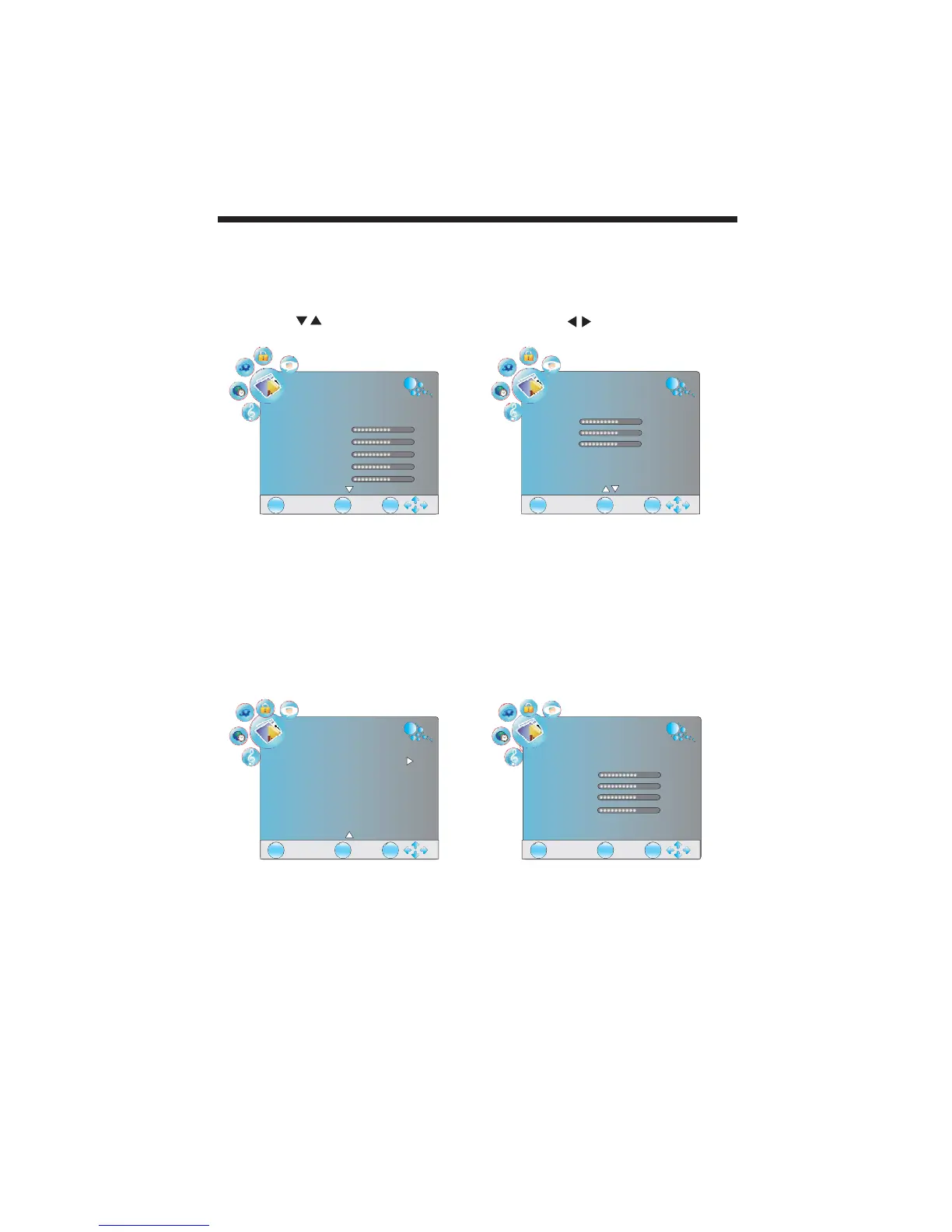 Press the buttons to select items and press the buttons to adjust.