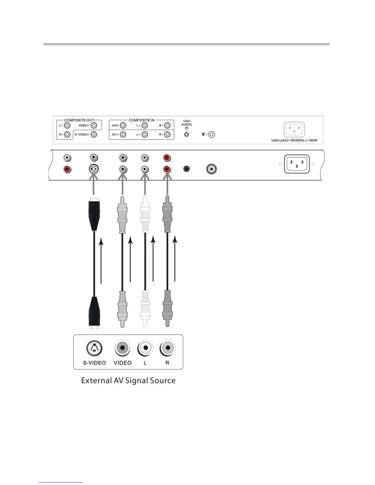 Use the AV cables to connect the external AV signal source to the AV input jacks on the rear panel of the