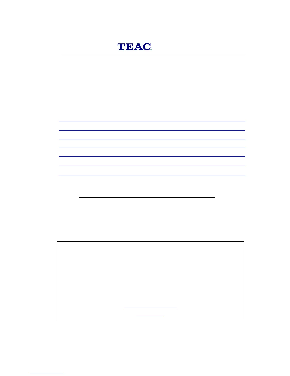 3. If you require Warranty Service, please contact the TEAC Customer Support Hotline at 1300 553 315 for