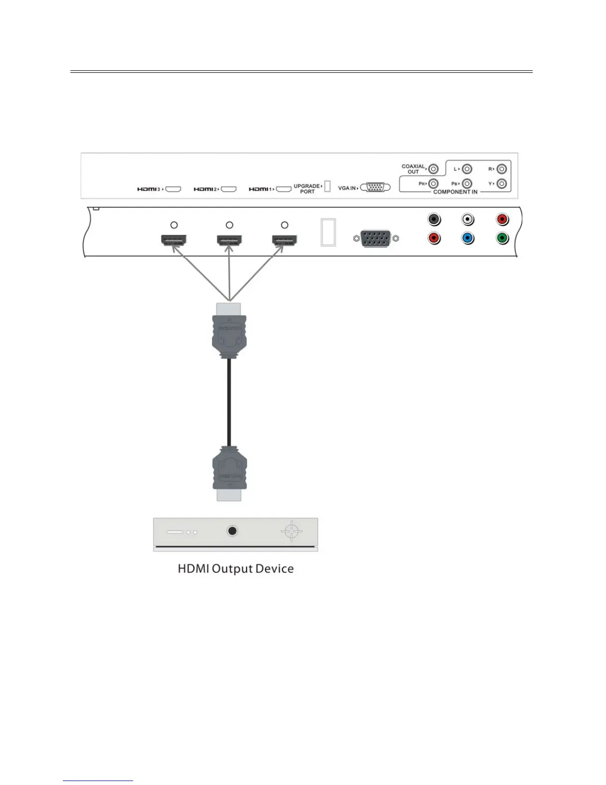 Follow the figure below to connect an HDMI signal source to one of the HDMI jacks on the rear panel of