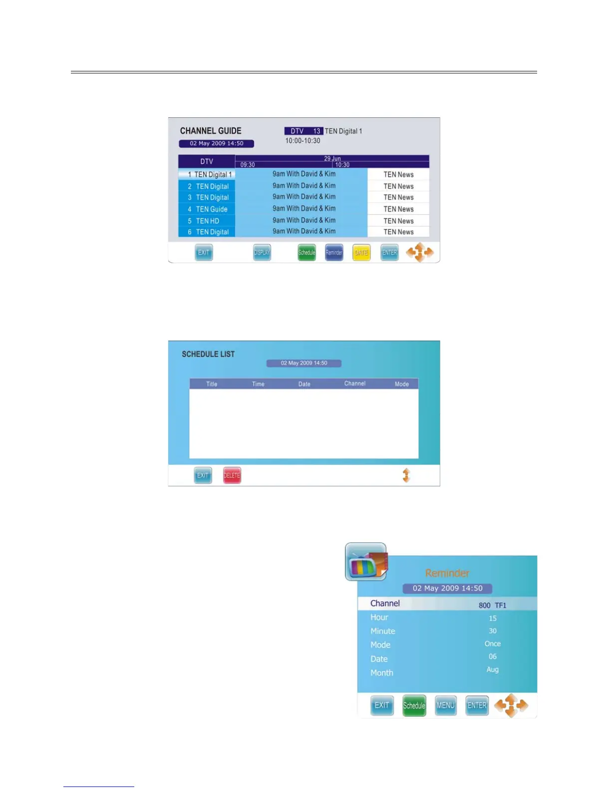 In DTV mode, press the EPG button to display the CHANNEL GUIDE menu as shown below: