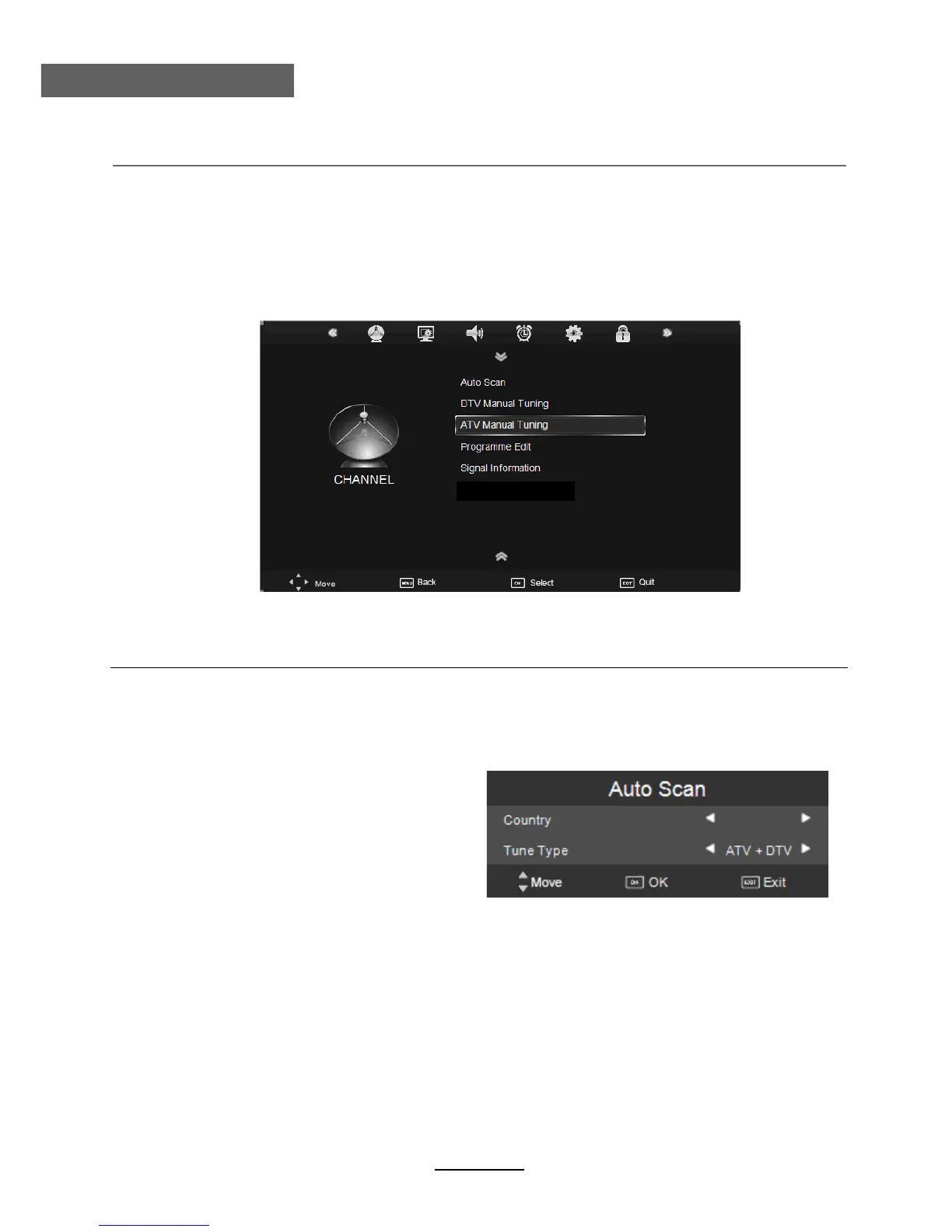 Press MENU button once to enter CHANNEL setup menu as shown above. Press OK to enter