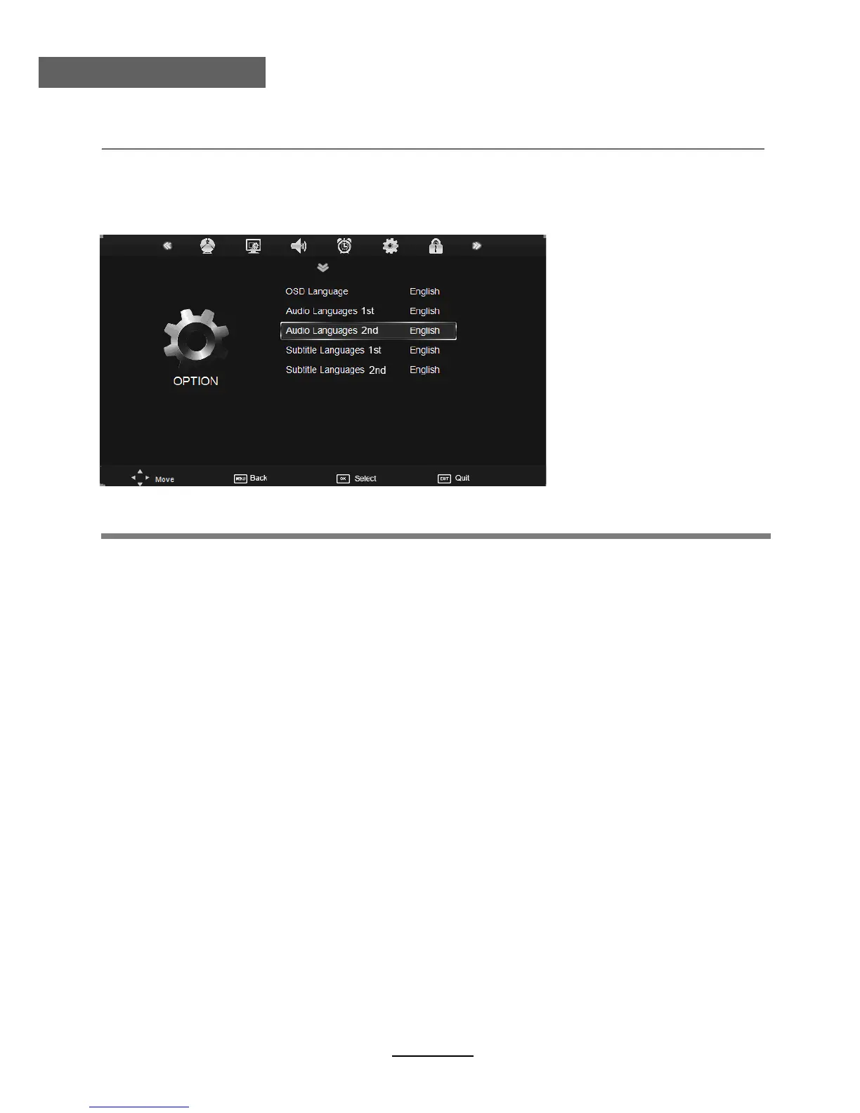 Subtitle Language 1st/2nd (can be selected in DTV mode): Allows you to select first and