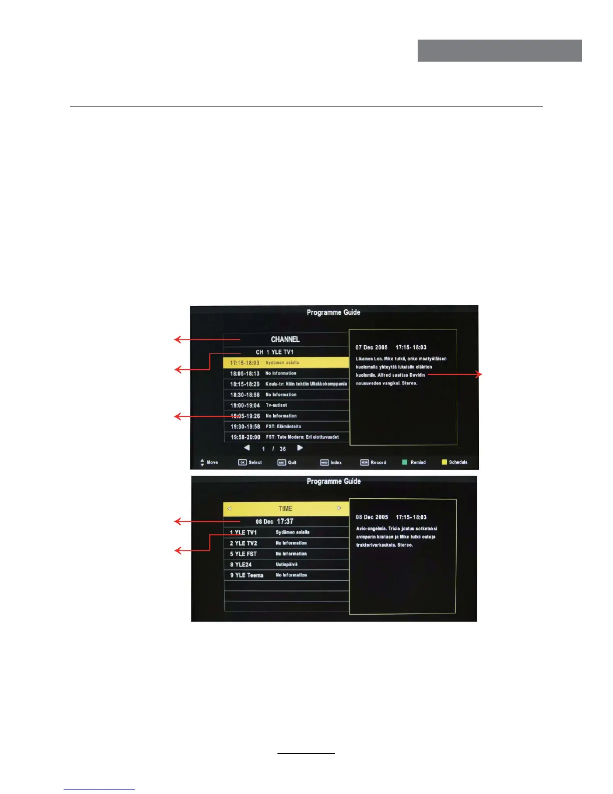 Press the EPG button to display the OSD menu as below: