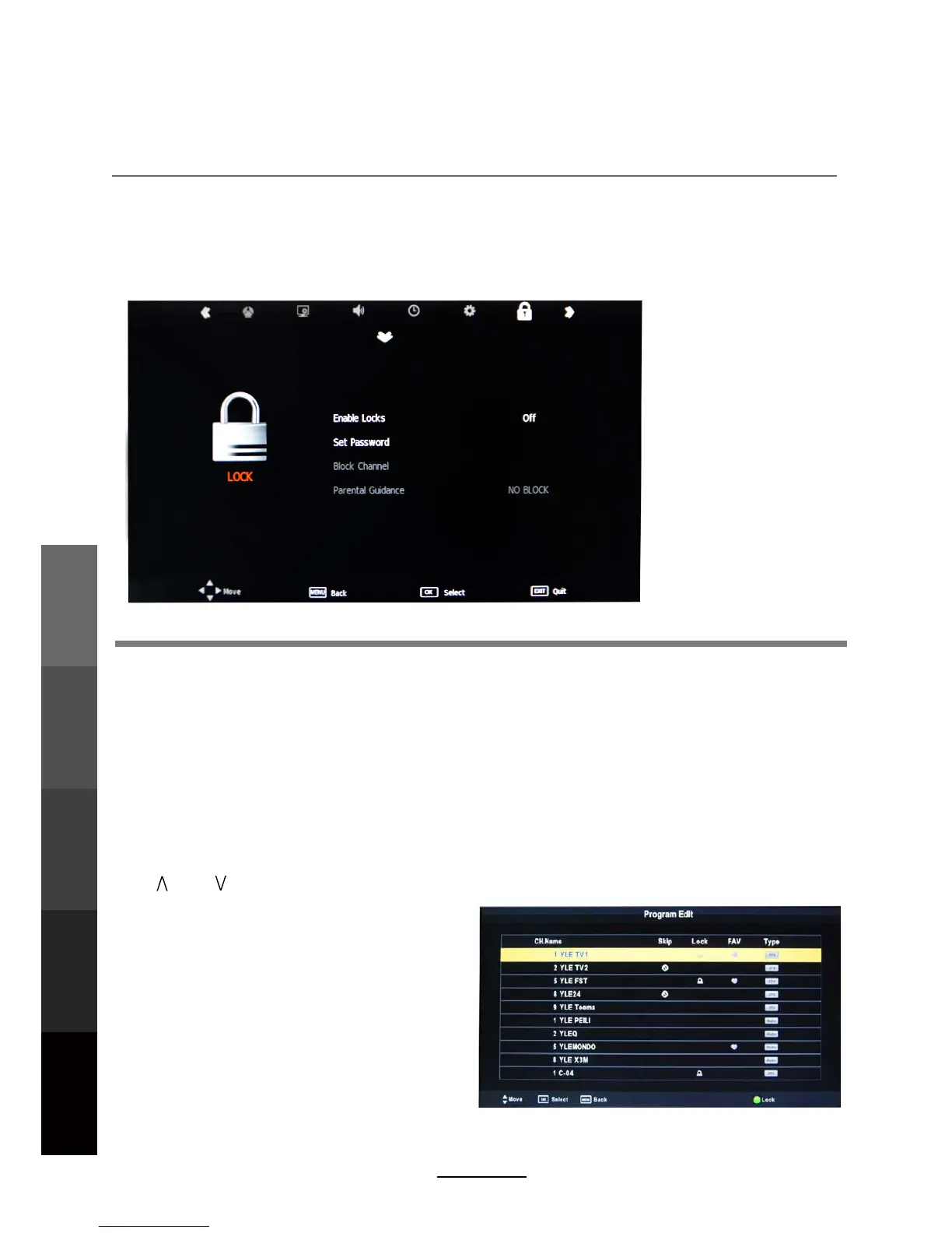 This option allows parents to block channels and programs using a password.