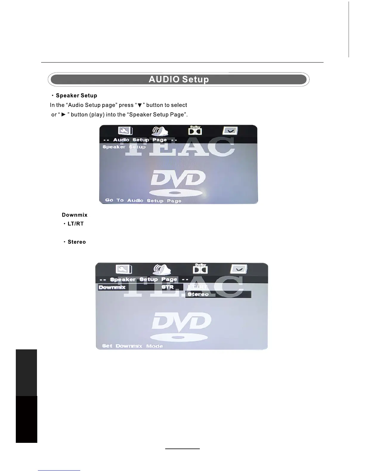 Select to downmix multichannel audio soundtracks to LT/RT channel output.