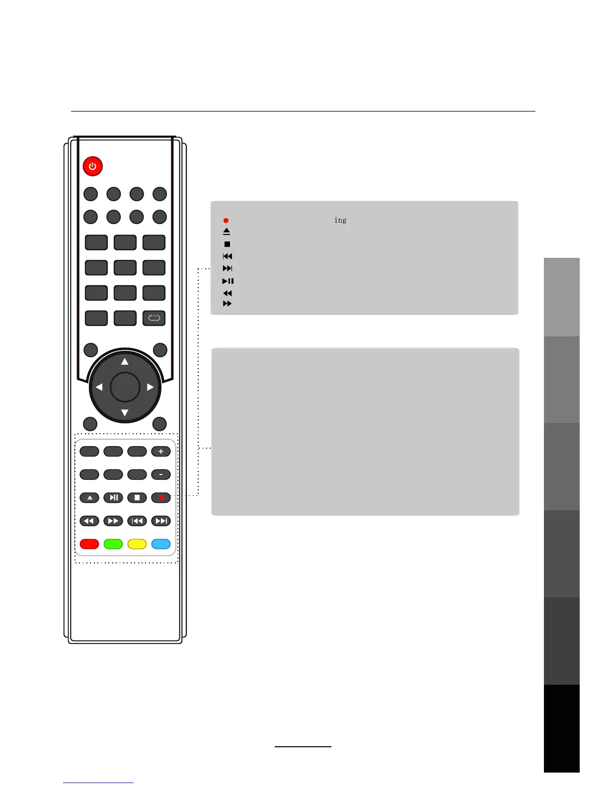 (REC): Press to start record the program in DTV mode.