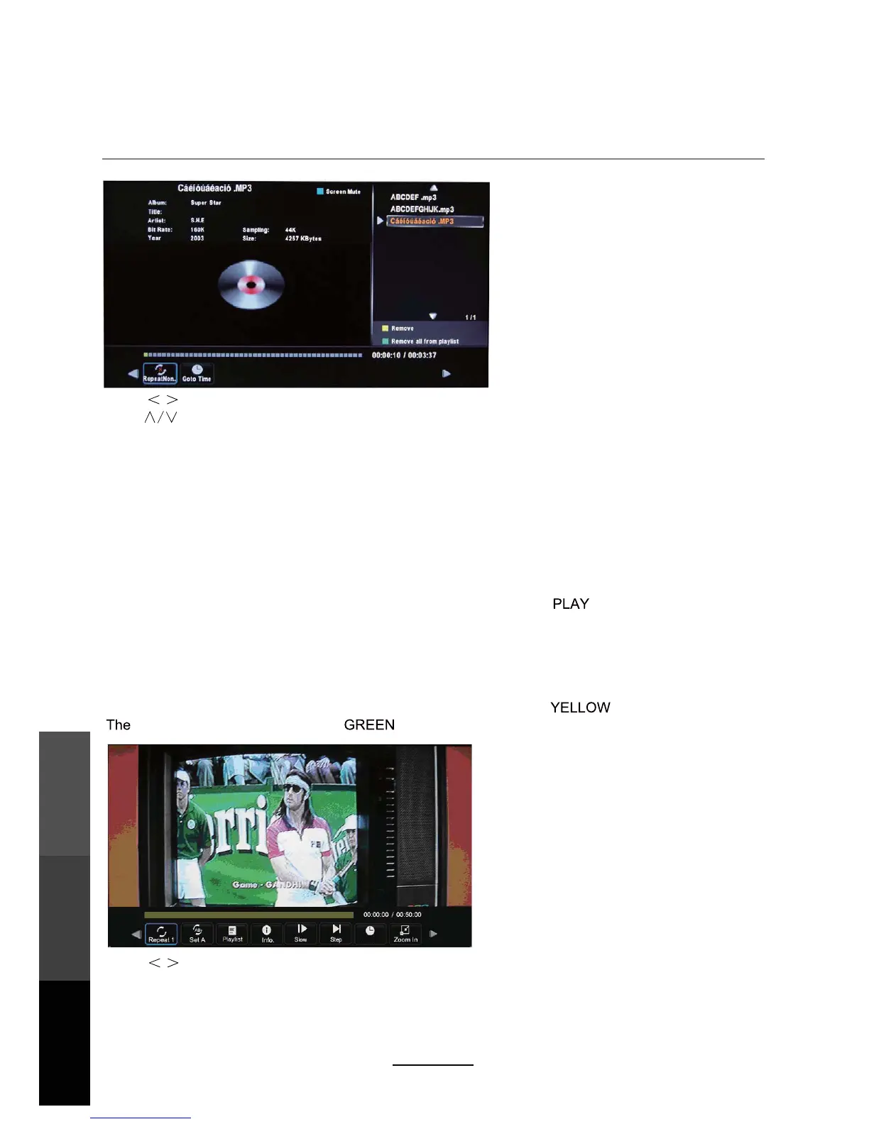 bar below, as illustrated below, and select playlist to select a different chapter or file by using the </>