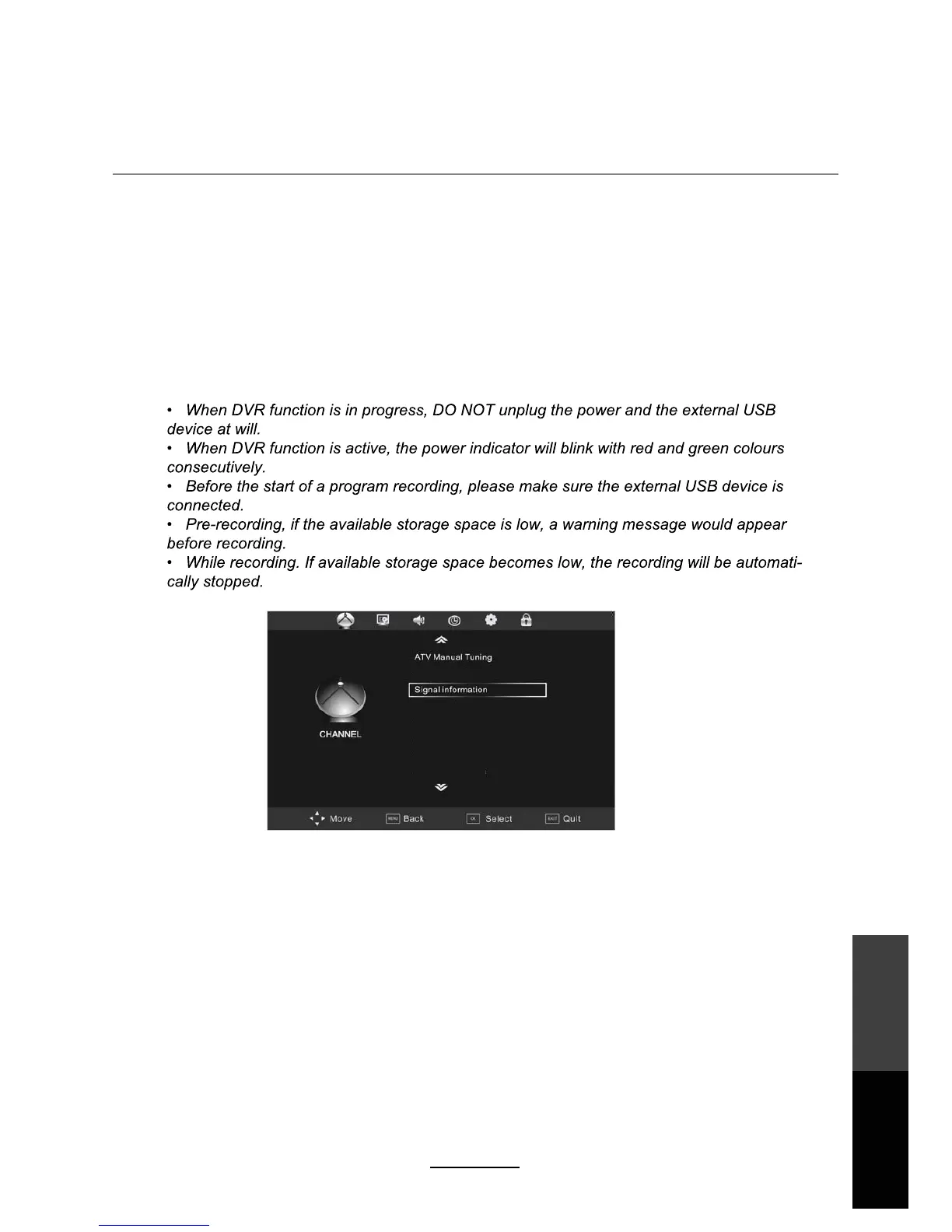 Digital Video Recording (DVR) settings (In DTV Mode only)