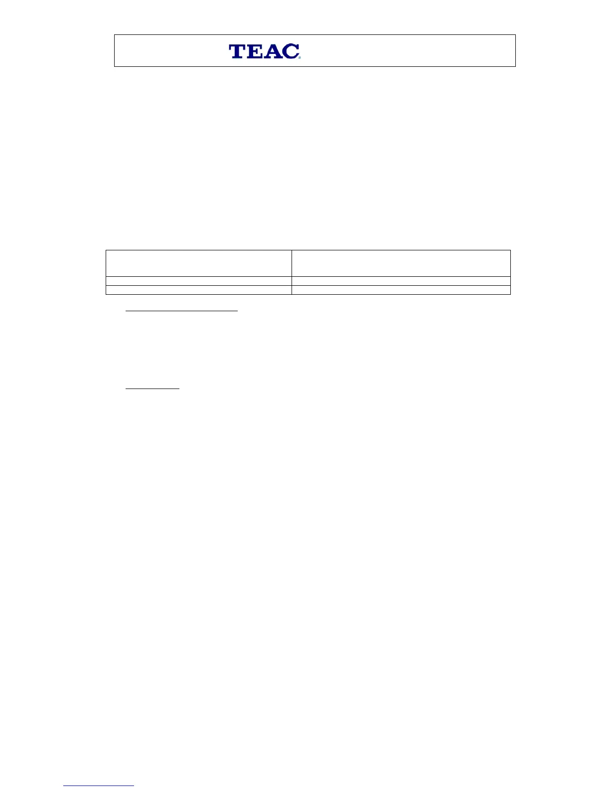1. TEAC warrants that this product is free from defects in material and workmanship under normal domestic use with
