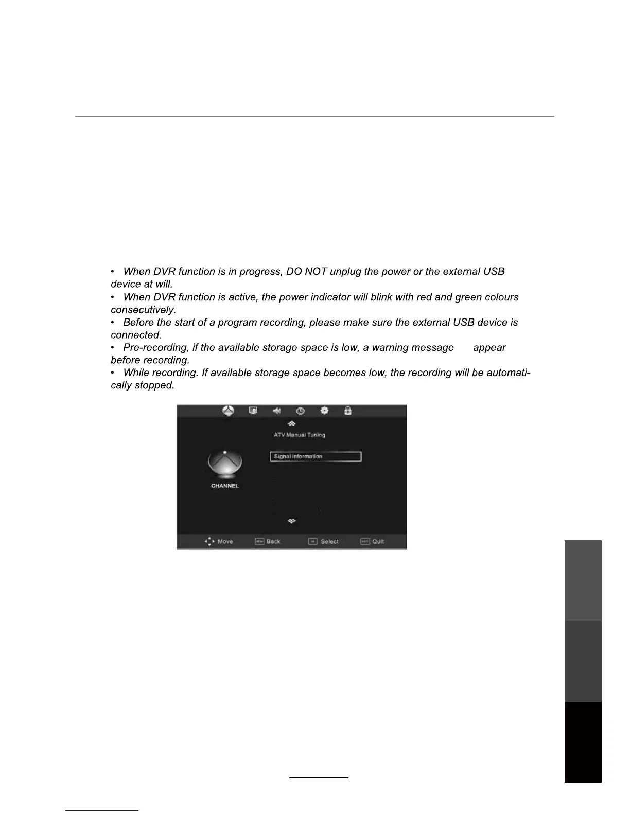 Digital Video Recording (DVR) settings (In DTV Mode only)