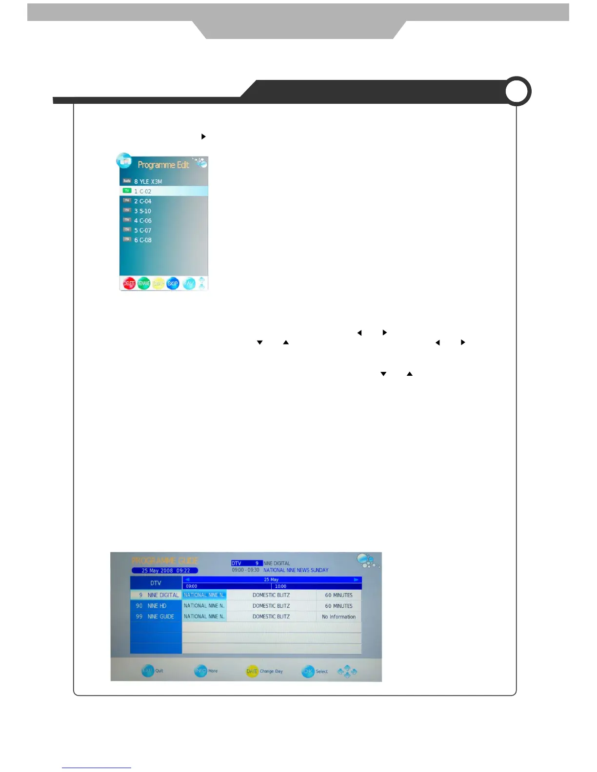 Press the EPG button on the remote control, the guide will then appear on the screen.