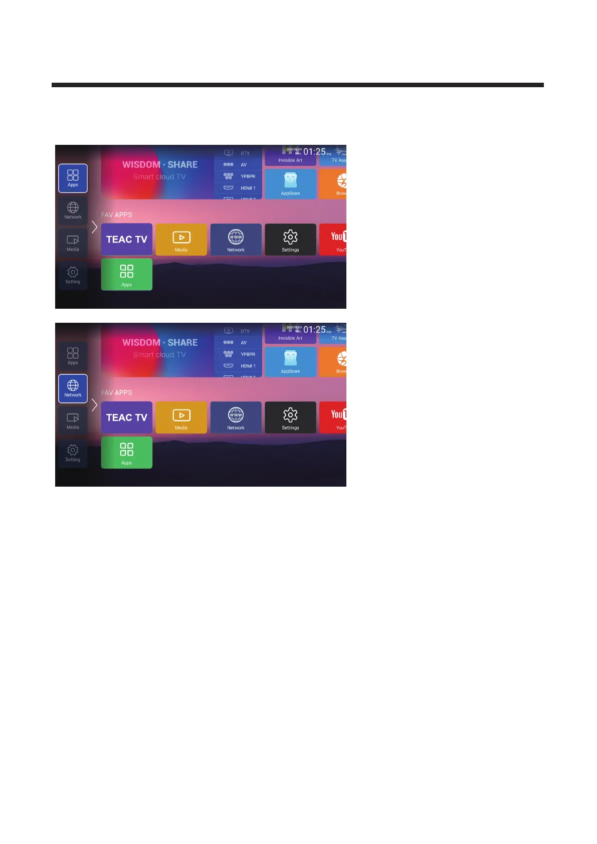 Press / / ◄ / ► button to select Movie/TV/HOT APP/FAV APP/MUSIC.