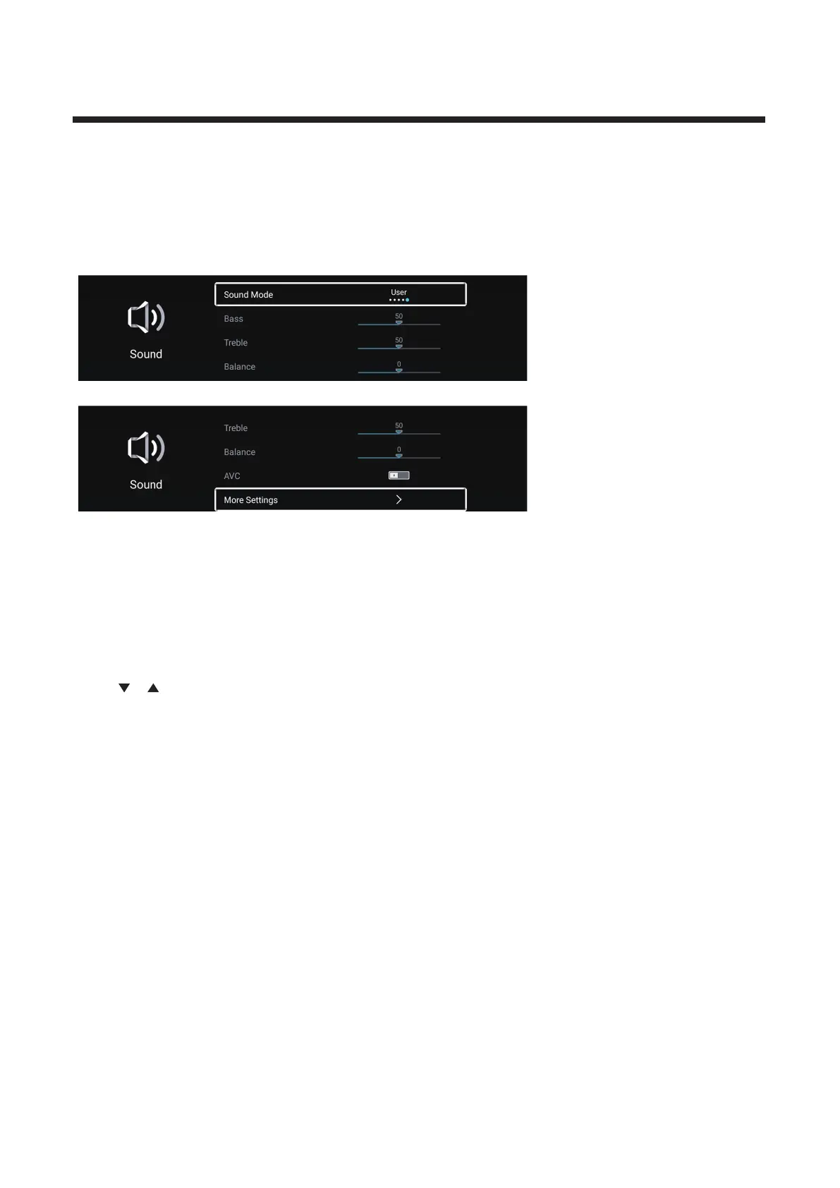 Press ▼ ▲ / button to select Sound Mode/Bass/Treble/Balance/AVC/AUDIO DESCRIPTION/