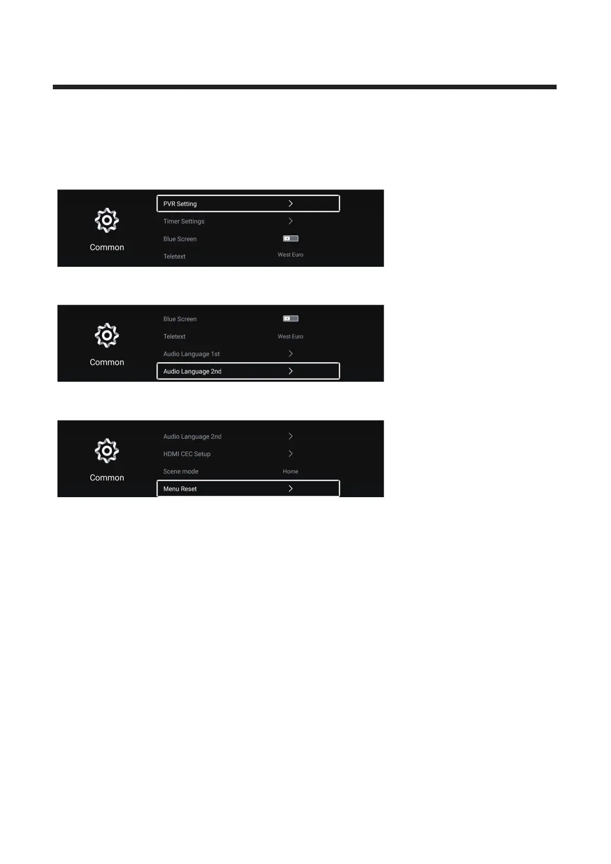 Press / button to select Common.