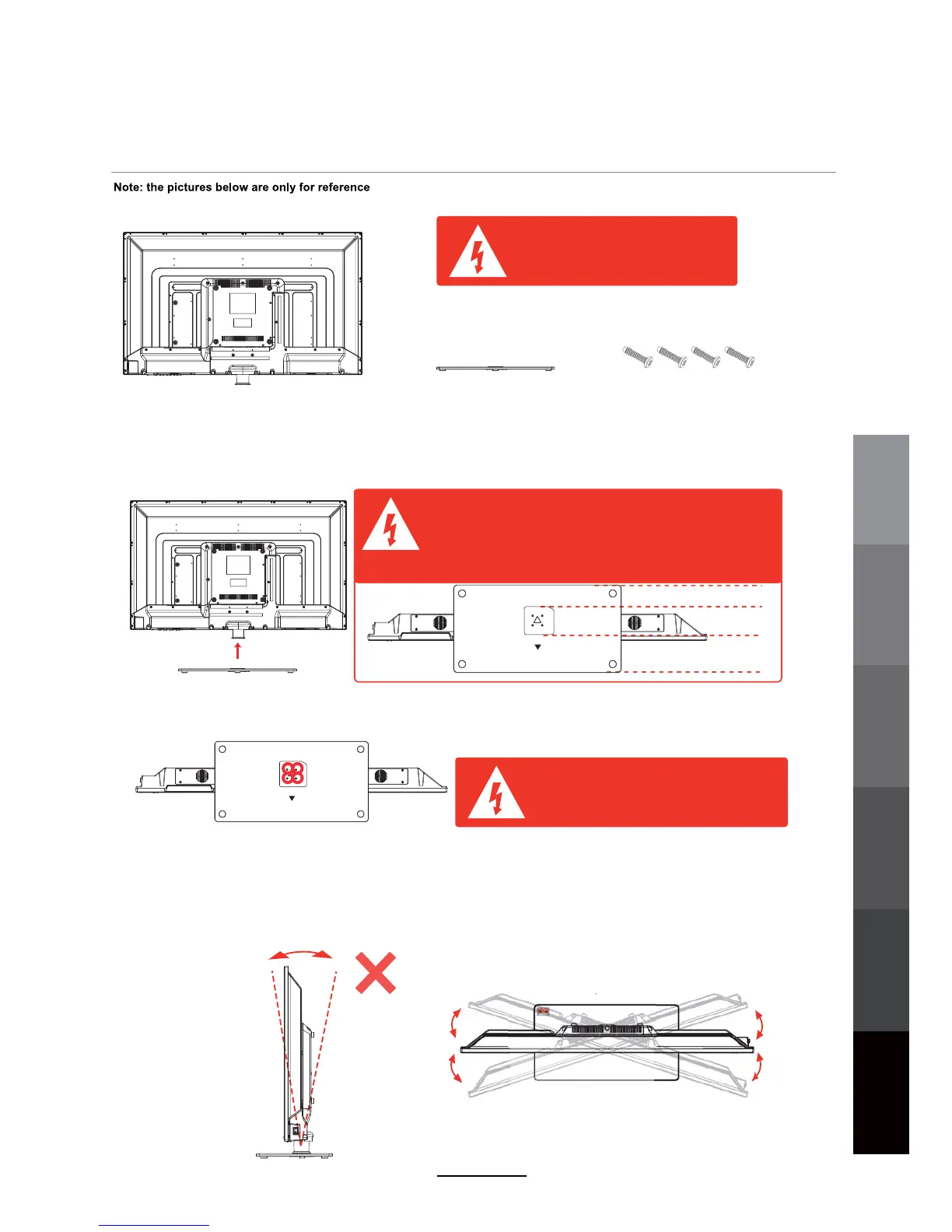 If you do not attach the stand correctly, the TV will become unstable