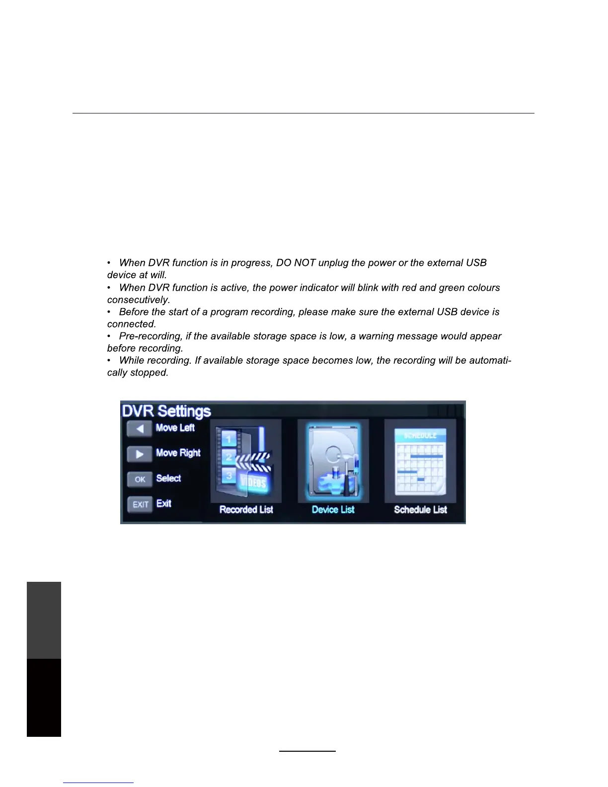 Digital Video Recording (DVR) settings (In DTV Mode only)