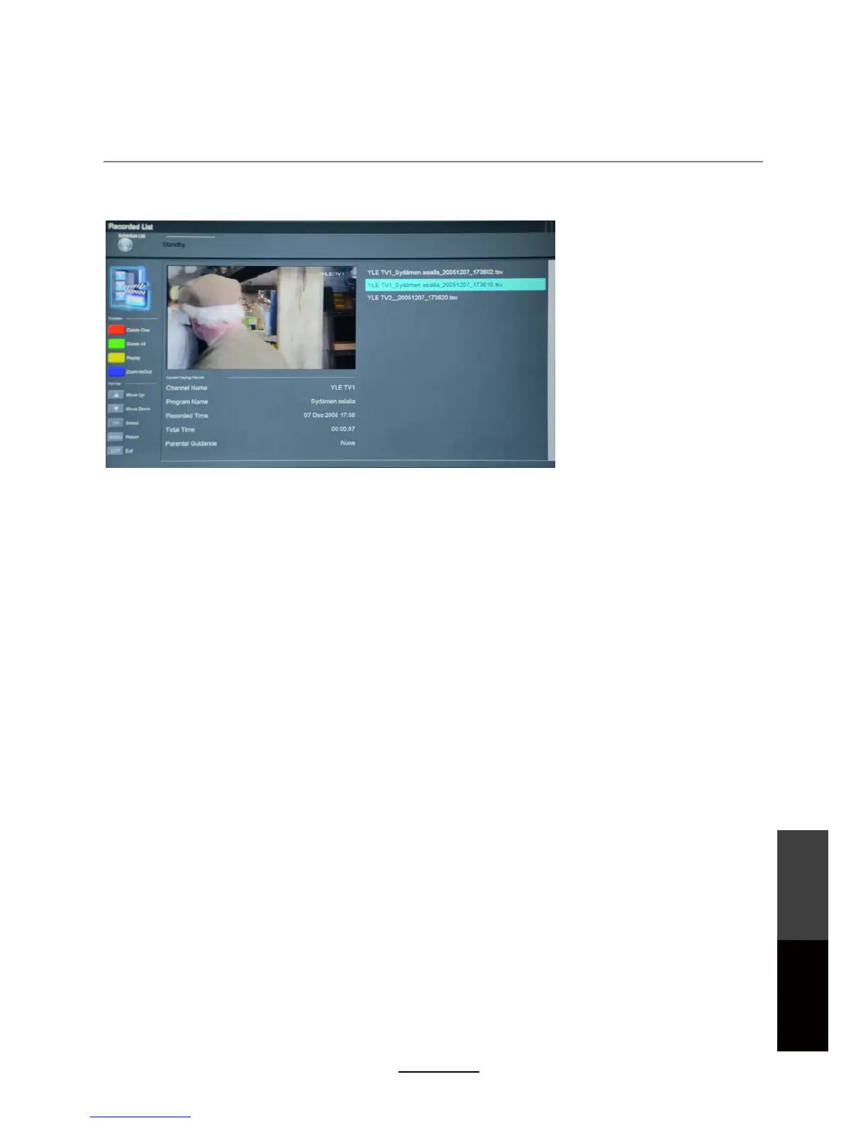 After the recording has been done, the stored programs can be viewed through a Recorded List