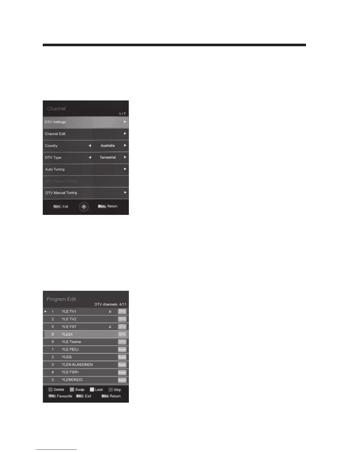 • Press RED button to delete the channel selected.