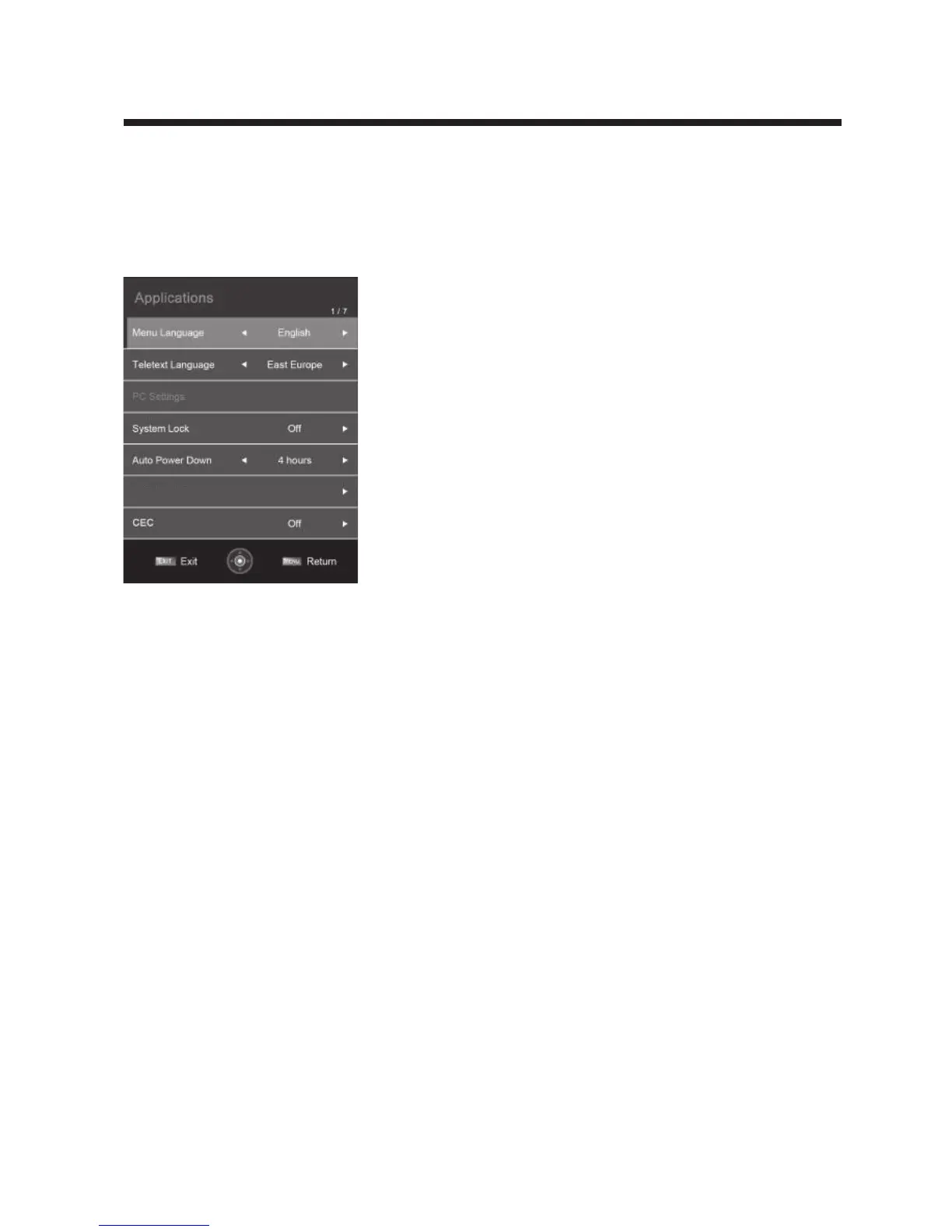 previous menu and press EXIT button to exit the entire menu.
