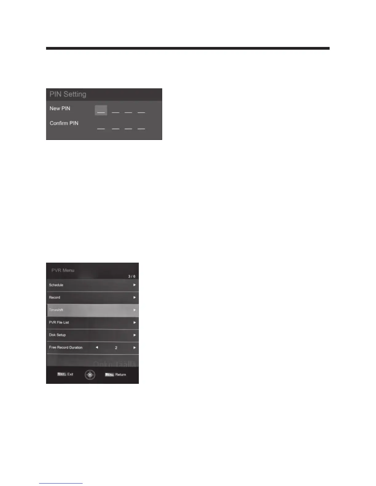 Press ▲/▼ button to select PVR Menu Menuthen press OK to enterthe sub menu will