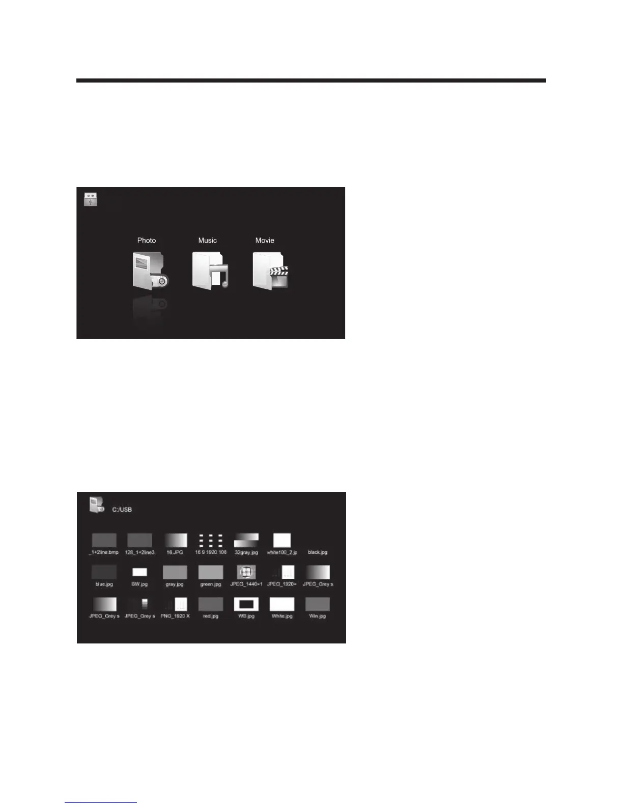 Press ▲/▼ button to select MEDIA in the Source Menu, and then press OK or ► to