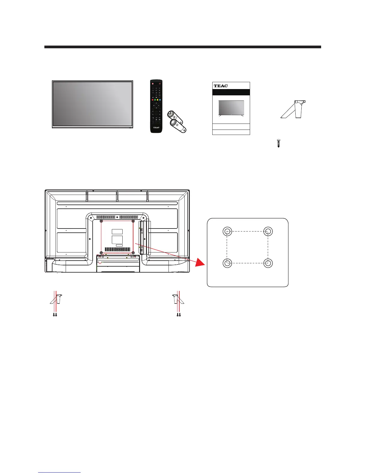 (NOT SUPPLIED). The VESA mounting pattern is 200 x 200 mm. Remove the screws