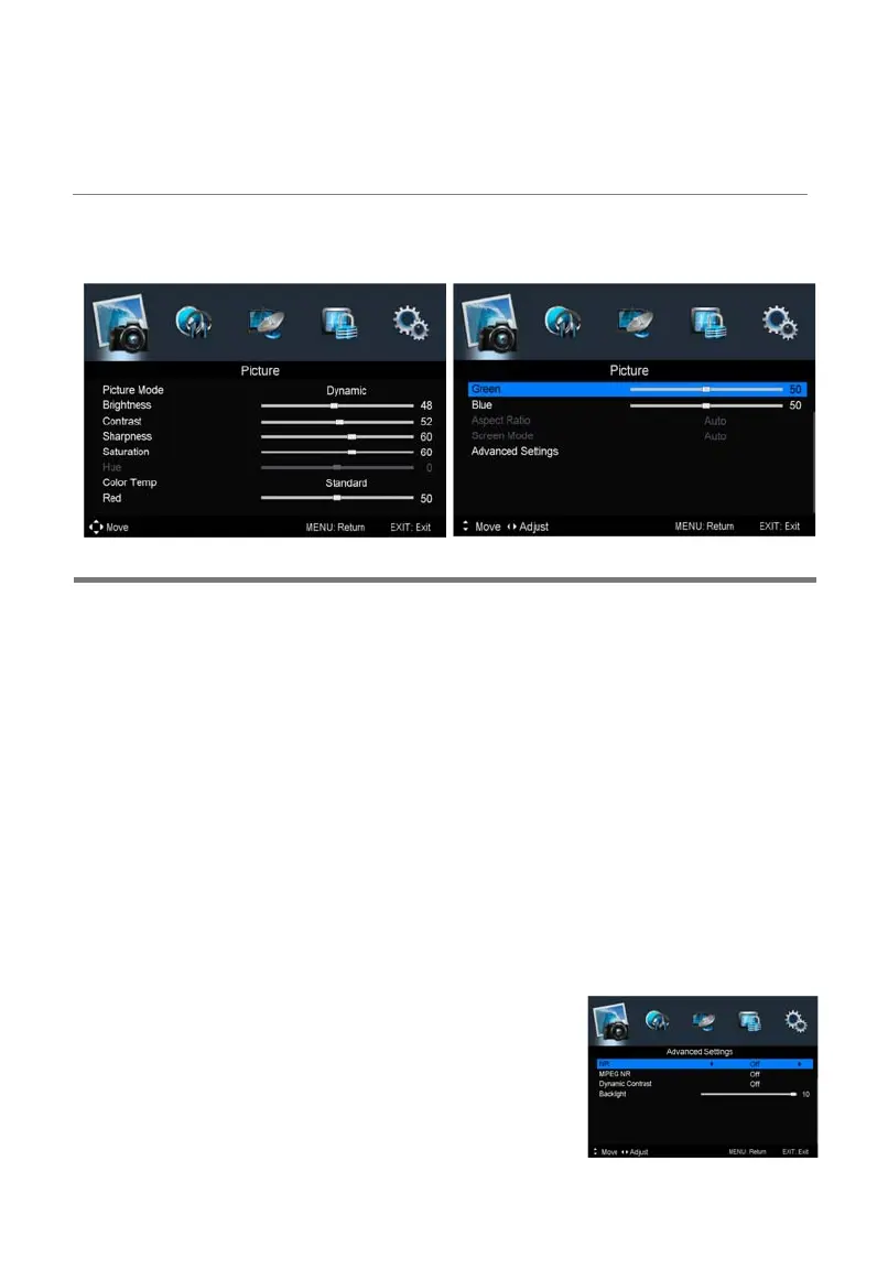 Advanced Settings: Adjust advanced video features to fine tune the picture.