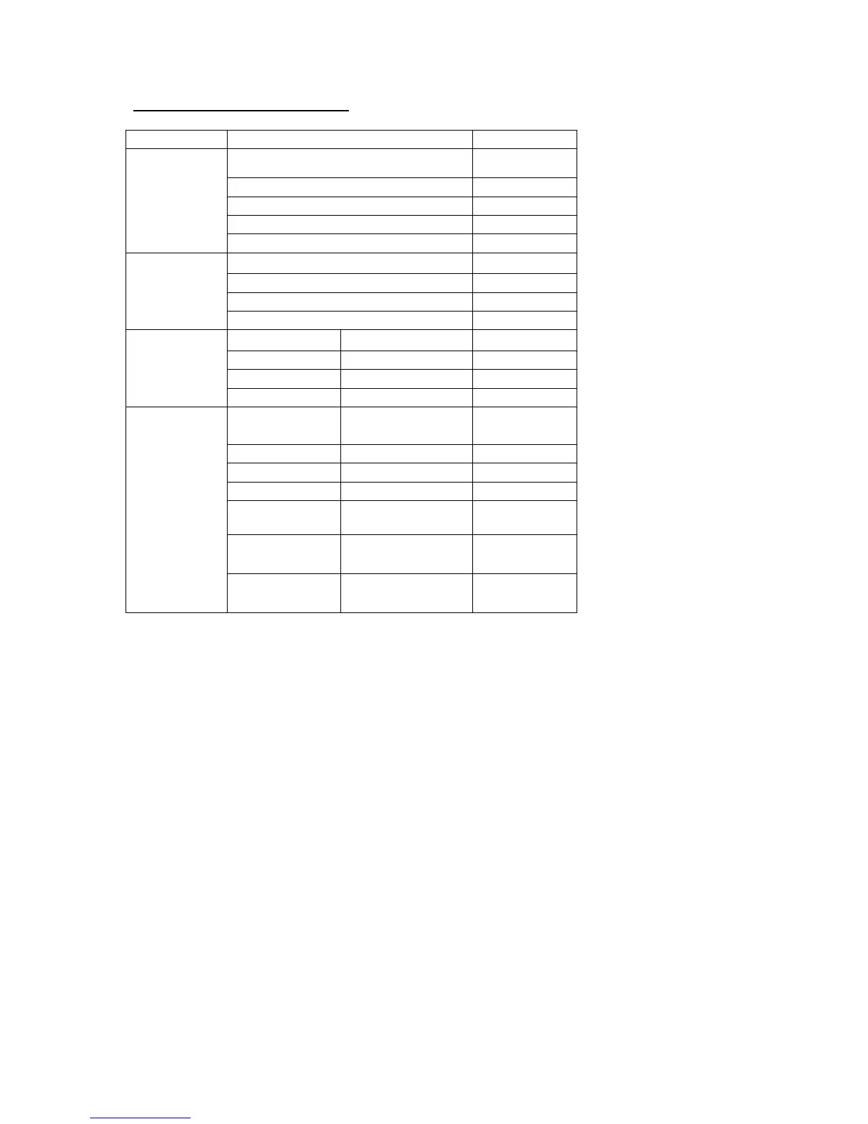 (X: Not Available, O: Available)