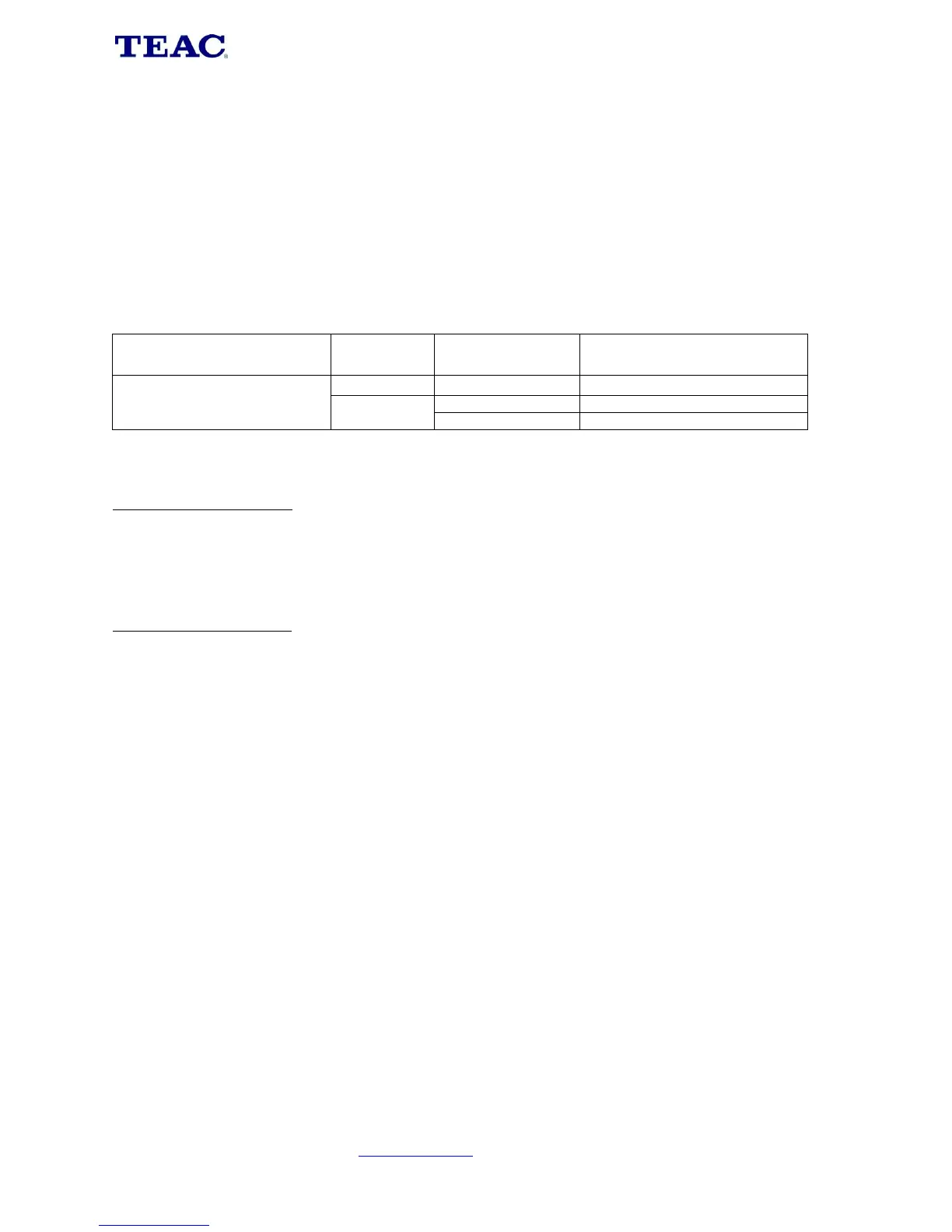 1. TEAC warrants that this product is free from defects in material and workmanship under normal domestic use with reasonable care and skill.