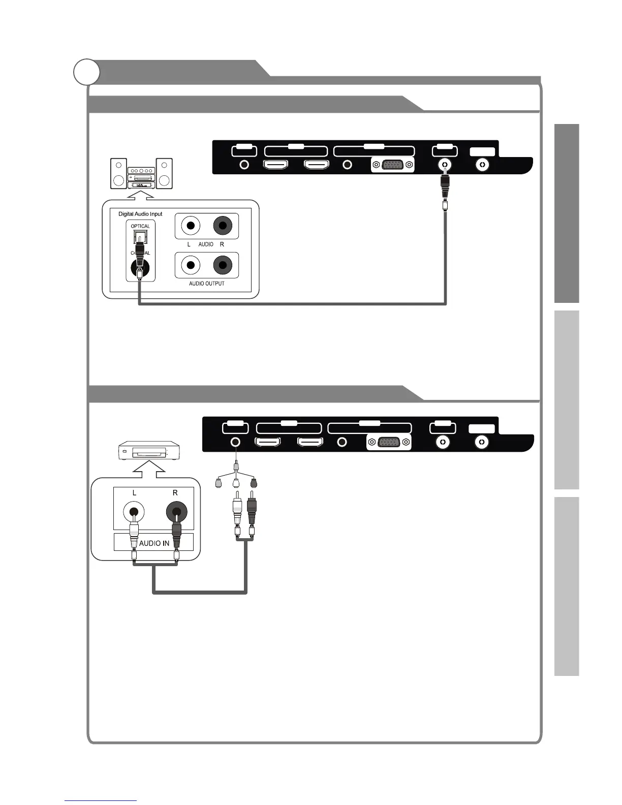 1. Connect an Optical Cable between the SPDIF jacks on the TV and the Digital Audio Input