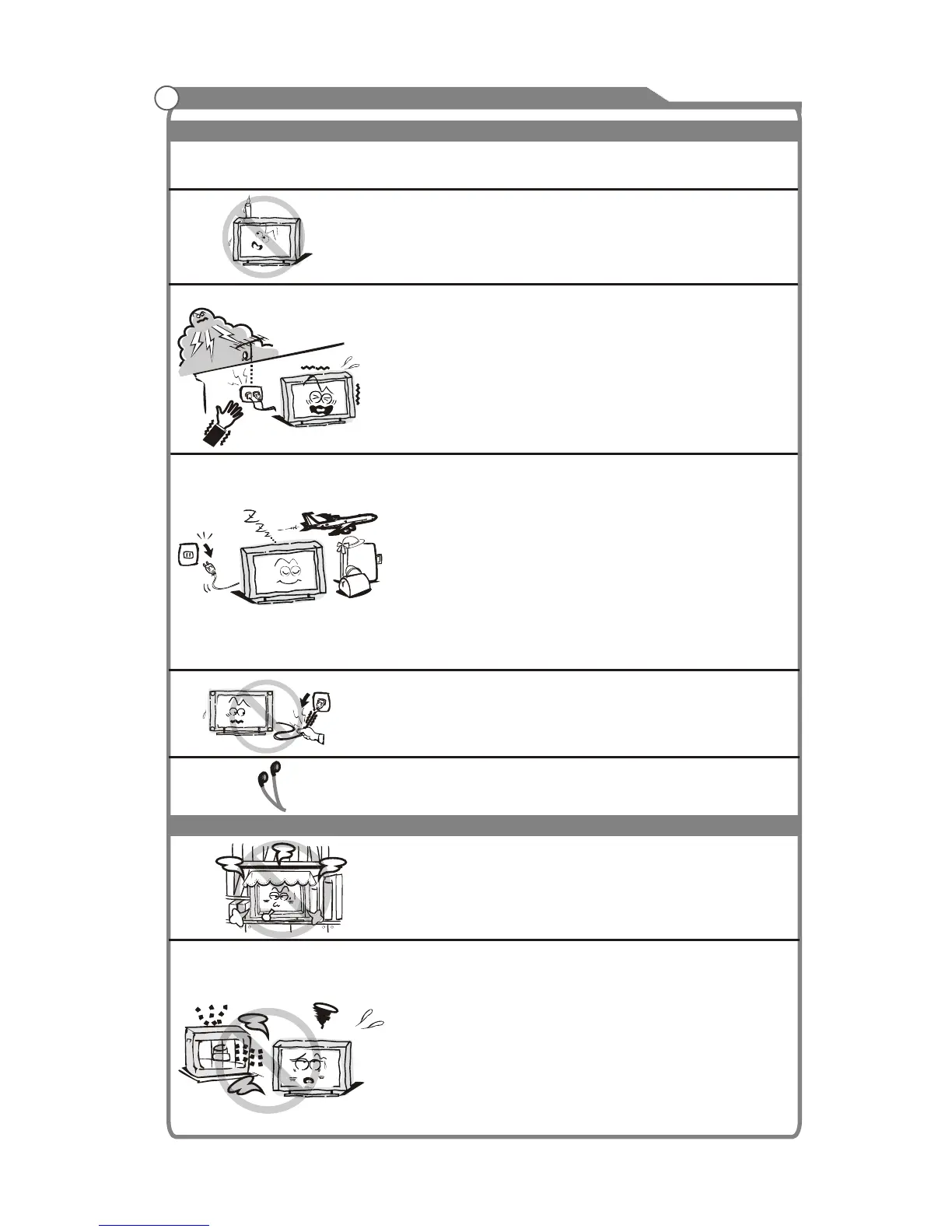 Do not push or scratch the front filter, or place any objects on top of the TV set. The