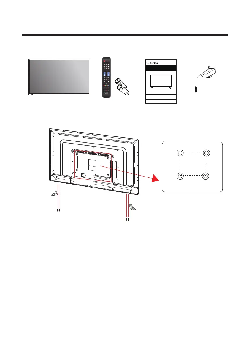 (NOT SUPPLIED). The VESA mounting pattern is 400 x 200mm. Remove the screws