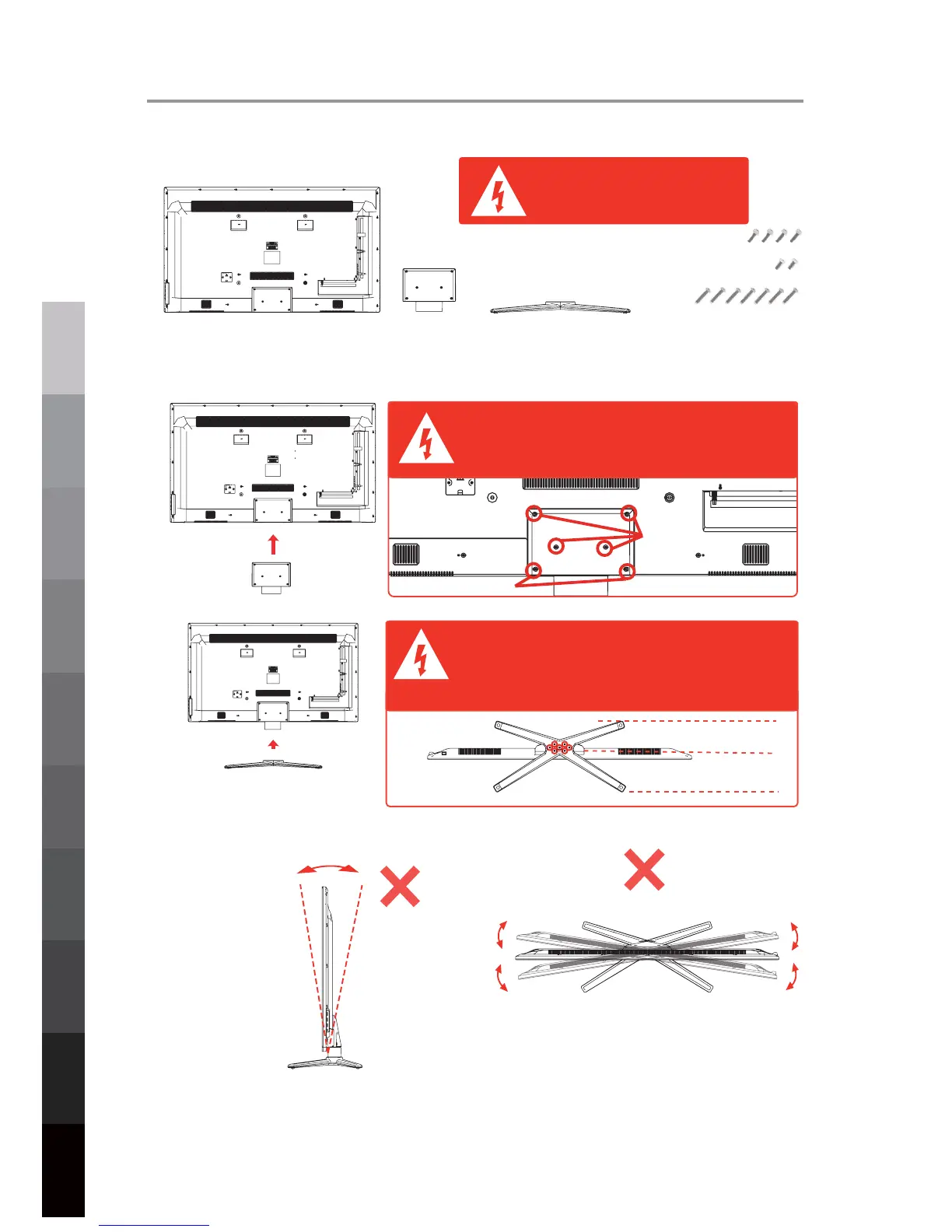 If the screws do not attach tightly, it will lead the TV to be unstable or