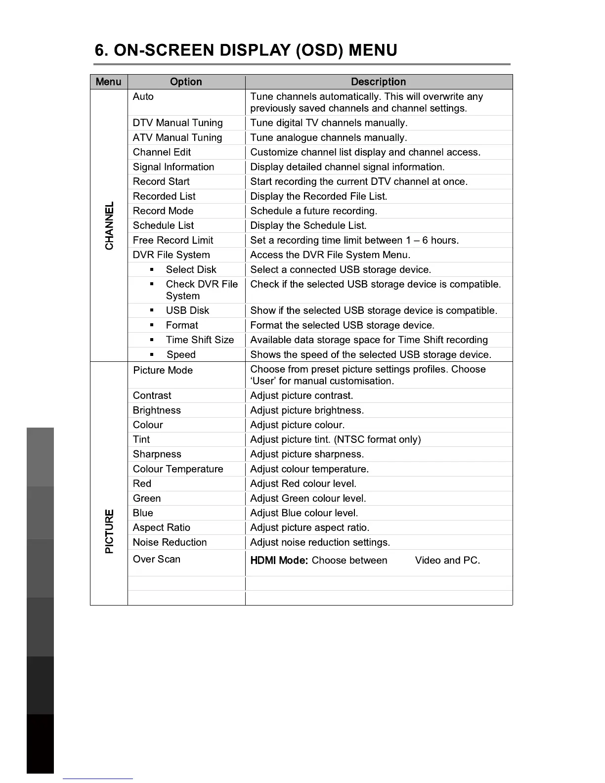 (OSD) Menu