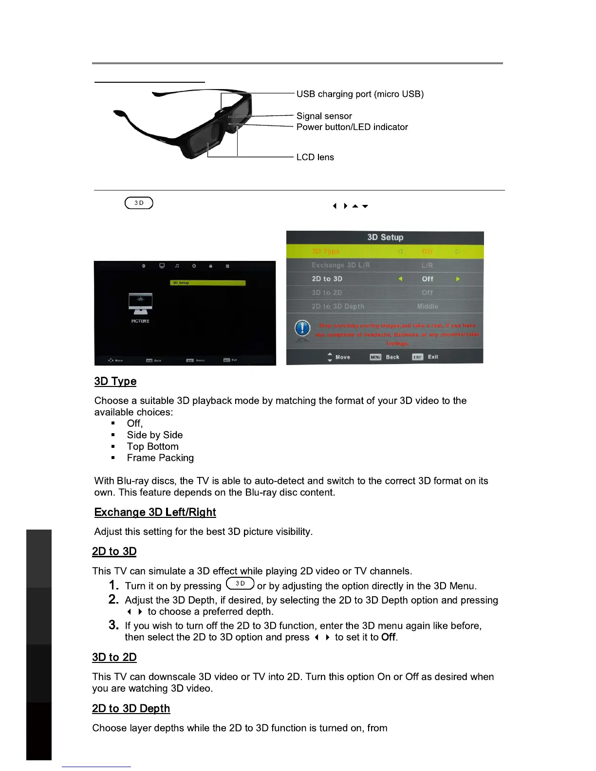 Press to display the 3D Setup Menu, and use to adjust the options. Some