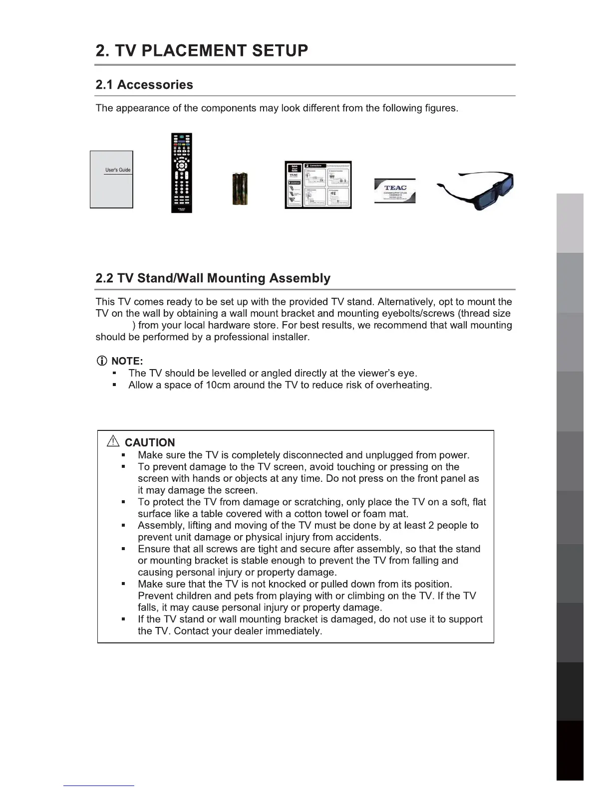 Teac LE5851FH3D - TV PLACEMENT SETUP; TV Stand;Wall Mounting Assembly
