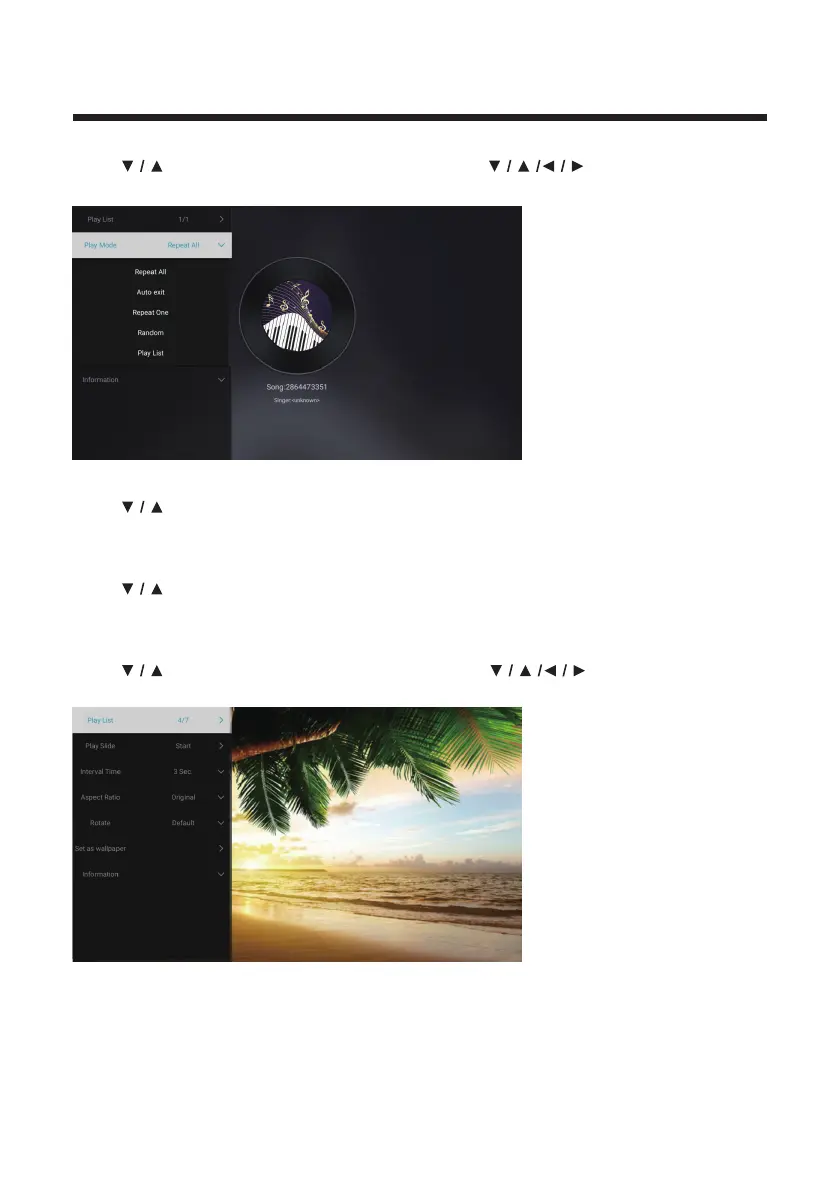 (Options: Repeat All/Auto exit/Repeat One/Random/Play List)