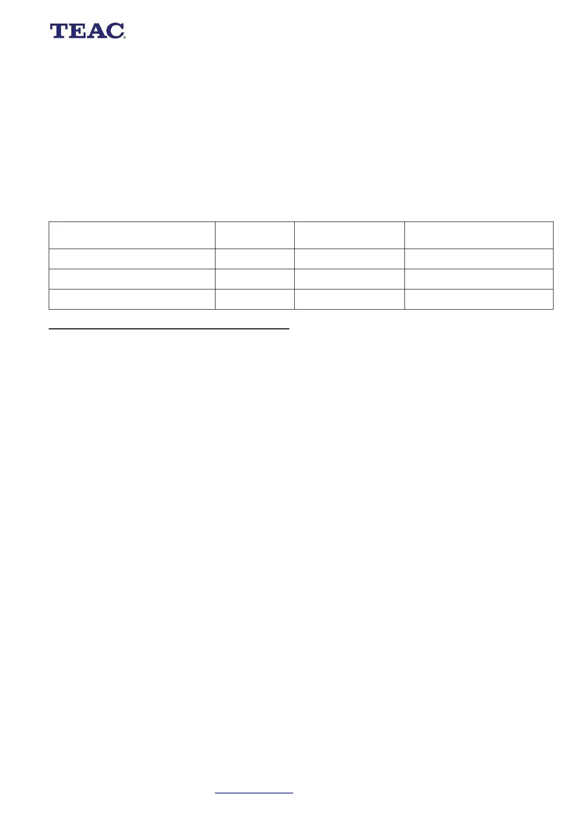 TEAC warrants that this product is free from defects in material and workmanship under normal domestic use with reasonable care and skill. Mainte-