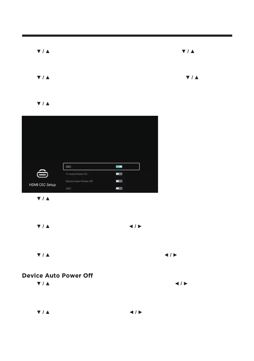 Press button to select CEC/TV Auto Power On/Device Auto Power Off/ARC.