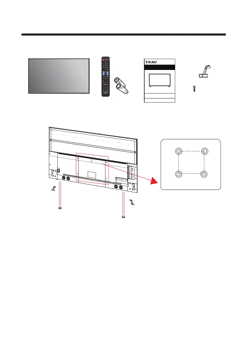 (NOT SUPPLIED). The VESA mounting pattern is 600 x 300mm. Remove the screws