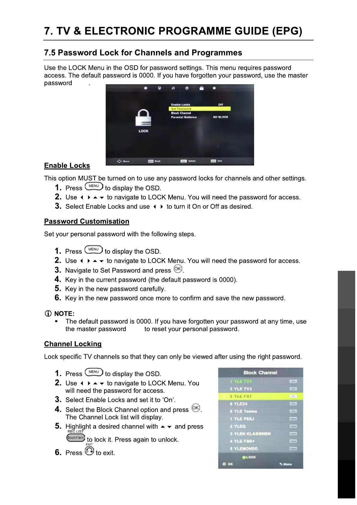 Teac LEBD32D10FHDR - Password Lock for Channels and Programmes